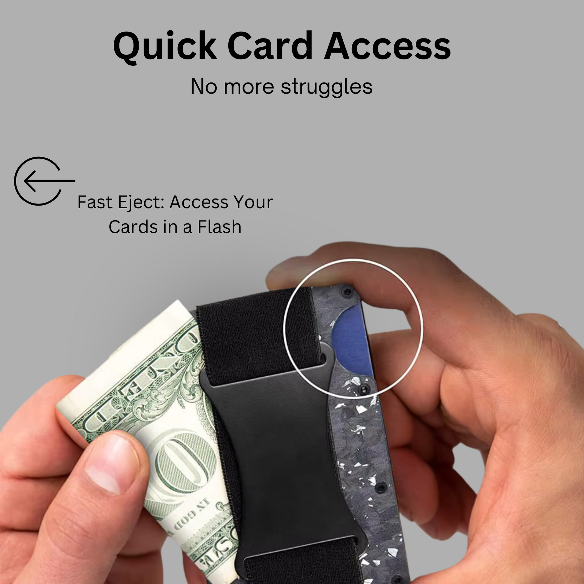 - Strap: Expandable backplate. Cash or cards. Quick grab. No bulk.